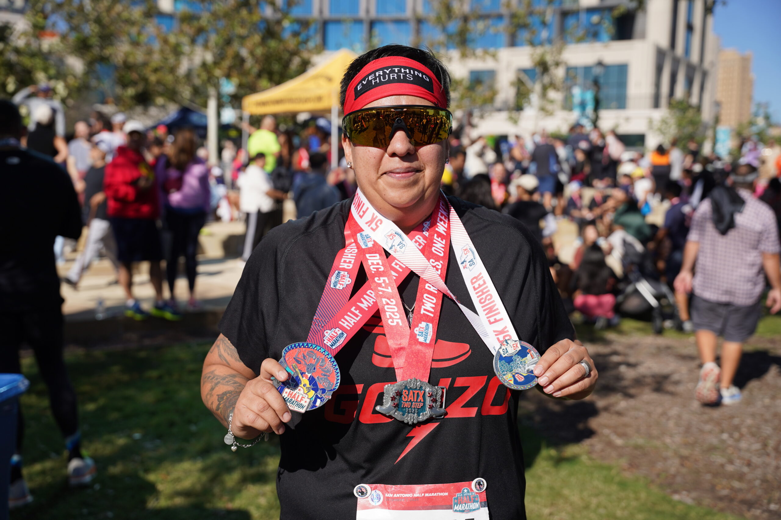 Take on the SATX Two-Step challenge by registering for the SATX 5K presented by Holidays on Houston on Friday, December 4, 2026 and the San Antonio Half Marathon or Marathon on Sunday, December 6, 2026. Cross both finish lines and earn a one-of-a-kind medal — the perfect reward for your Texas-sized accomplishment.